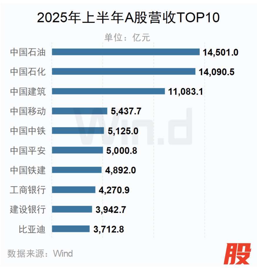 "两桶油"稳居A股2025年上半年营收前二名"两桶油"稳居A股2025年上半年营收前二名